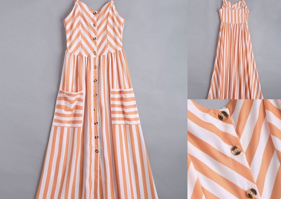 2-Button Up Striped Cami Dress
