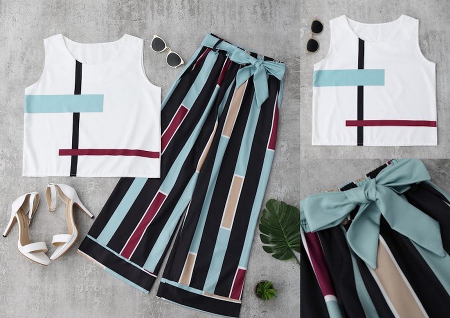 3- Striped Tank Top And Belted Pants