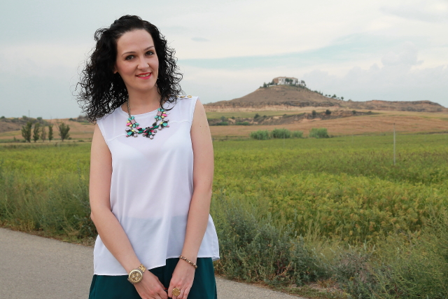 Como ya os comenté, durante mis vacaciones los momentos de shopping dieron mucho de si trayéndome conmigo varias piezas. Los shorts verde botella que llevo hoy son una de estas compras. Los que seguís habitualmente el blog, ya os habréis dado cuenta que el verde es un color que tan apenas utilizo, por eso mismo cuando vi estos shorts dudé, pero cuando me los probé y pude ver la caída tan bonita que tienen lo tuve claro, se venían conmigo. En el look de hoy quería dejar todo el protagonismo tanto al collar joya multicolor como a los salones amarillos, por lo que he combinado los shorts con una sencilla blusa asimétrica.