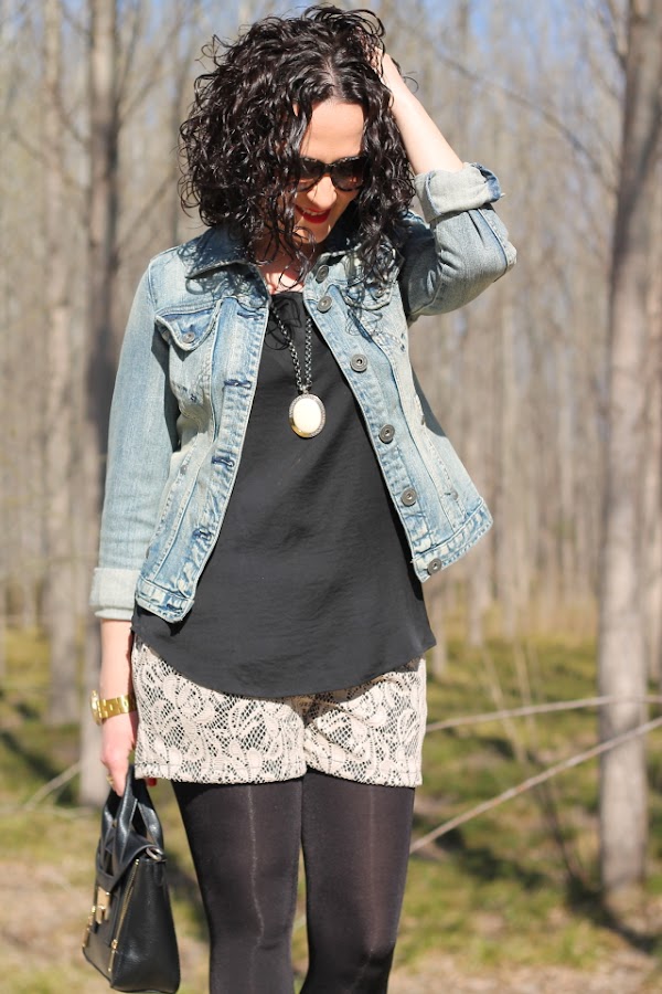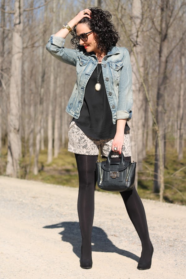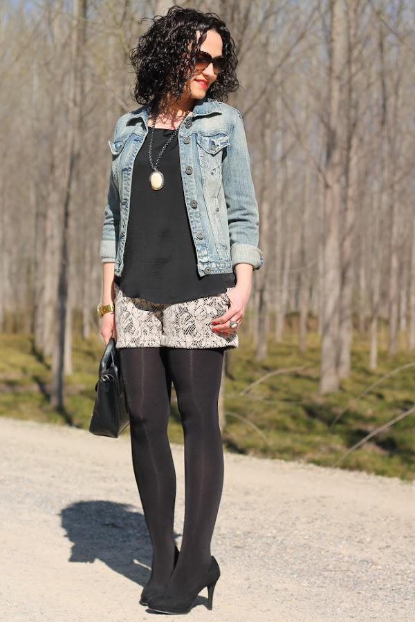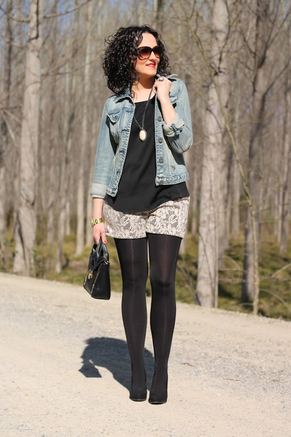 El guipur me gusta llevarlo en todas sus versiones, ya sea en blusas, faldas o pantalones, me parece junto al encaje un tejido super femenino y los looks con él me enamoran. Cuando vi por primera vez en la tienda estos shorts de guipur no los compré por el tono nude que tenían pero finalmente unos días más tarde se vinieron conmigo porque me parecen preciosos. La verdad es que con mi tono de piel tan clarito, sin medias tupidas no me gusta mucho como me quedan pero con ellas me chiflan así que desde que los compré he aprovechado al máximo para llevarlos y los tengo ya más que amortizados.