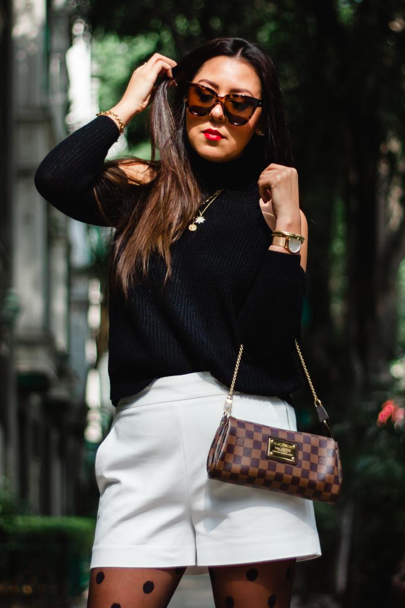 Suéter: SHEIN / Shorts: Zara / Medias: Oysho / Bolso: Louis Vuitton / Gafas: LeSpecsLEER MÁS: ES SEGURO COMPRAR EN SHEIN