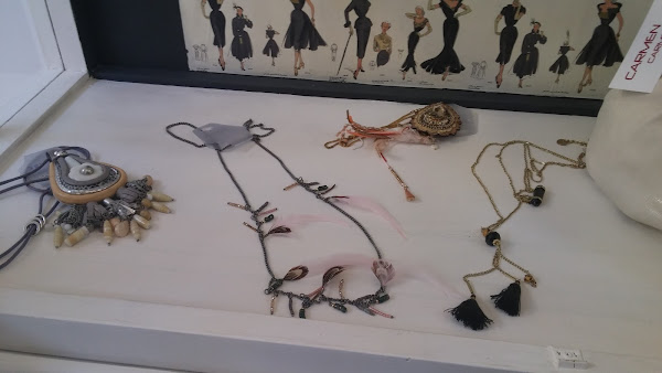 Aquí os dejo una muestra de los bolsos y collares ...