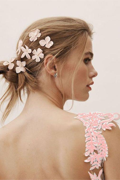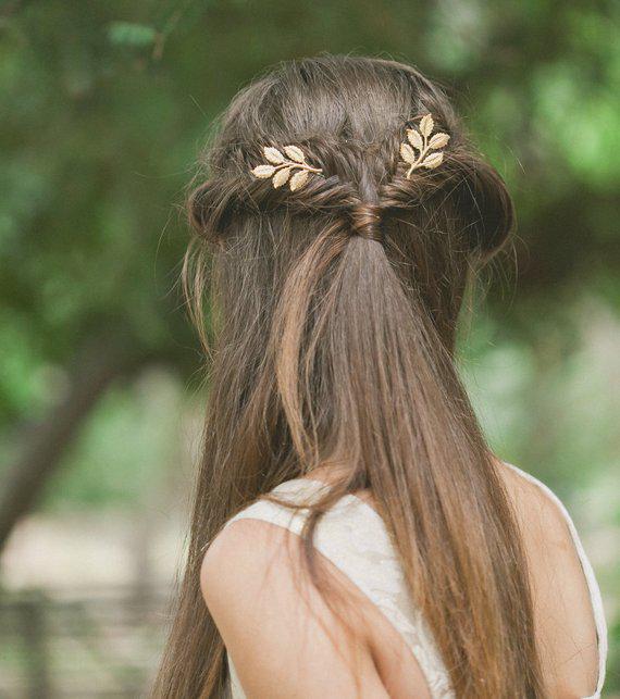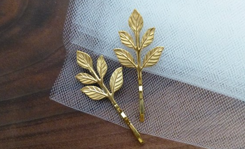 Si usas varios adornos pequeńos puedes crear tu propio diseño. Vienen pegados a un pin que lo puedes colocar en toda la cabeza como lo prefieras y vienen en diferentes materiales como metal, tela o plástico y en diferentes formas como hojas, flores o perlas.