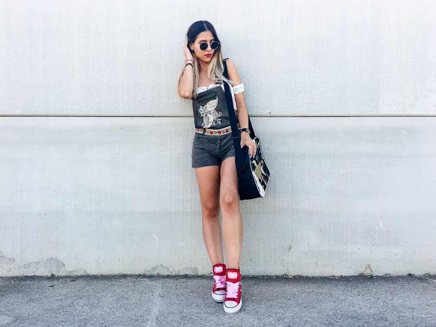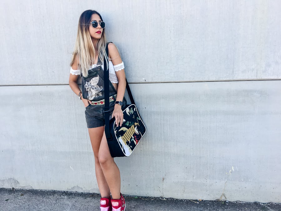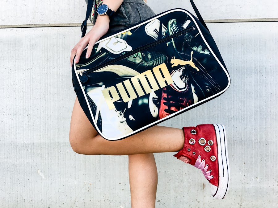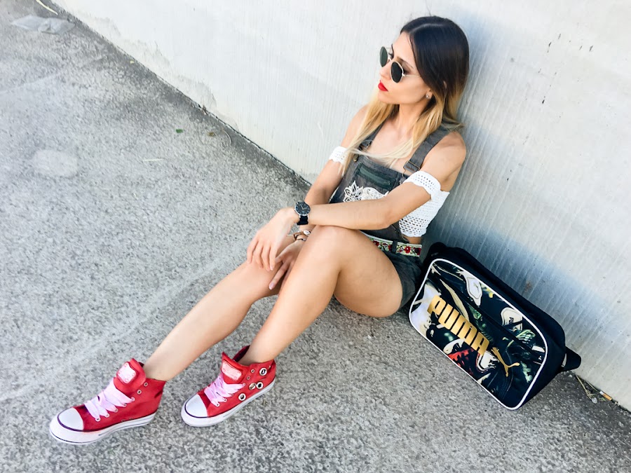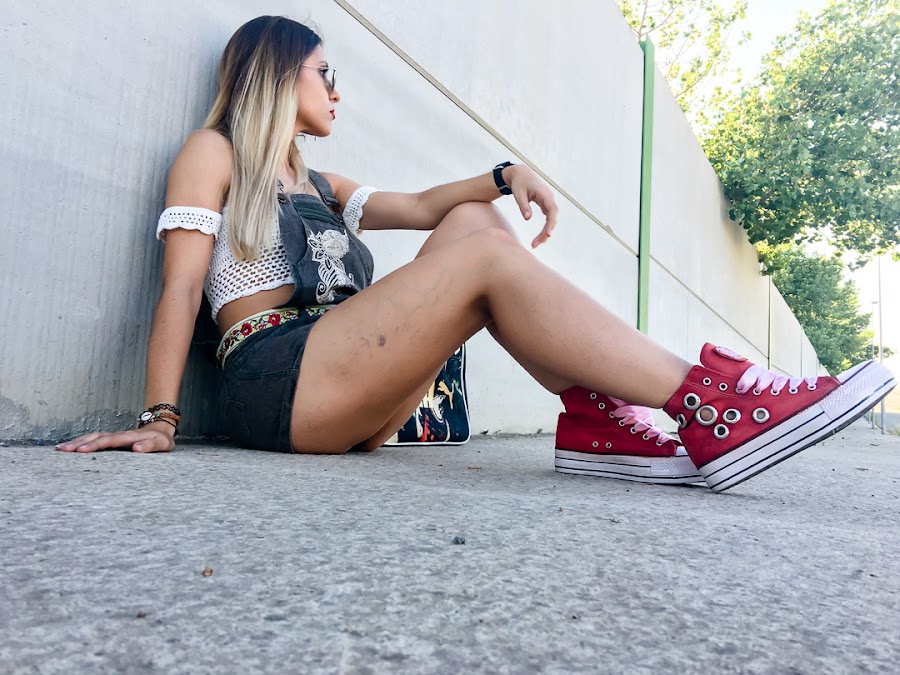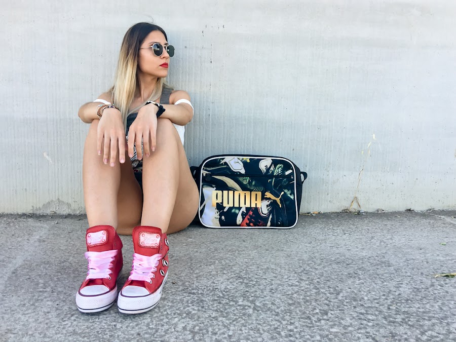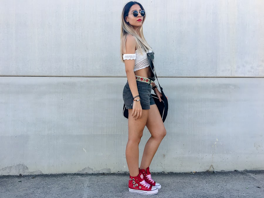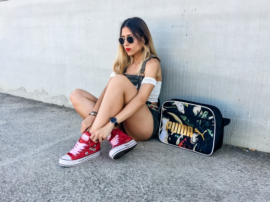 Ive combined it with a ZAFUL crochet crop top, which you already saw before, and my new red sneakers with tacks and satin drawstring cords (also come with normal, reddish-white cords worn, also very cool) by Pipioca, who You can get registered in TRENDY GURU, and my PUMA sports bag.
