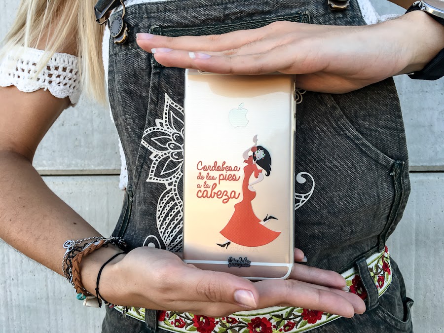 Pero el accesorio principal es mi nueva funda para mi iPhone de MOVIATICOS, una tienda donde pueden personalizarte cualquier funda para tu móvil con lo que tú quieras, una foto tuya, una imagen que te guste.... Yo he elegido una funda muy especial para una cordobesa como yo y es chulísima!!