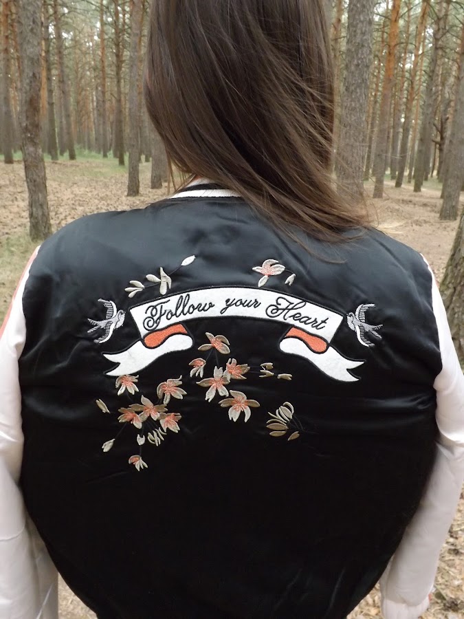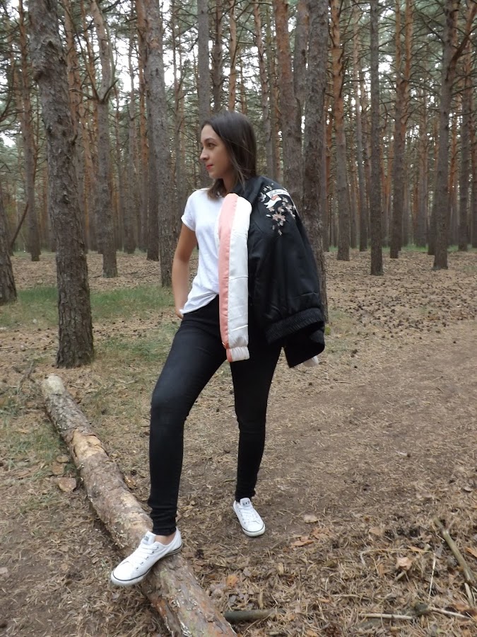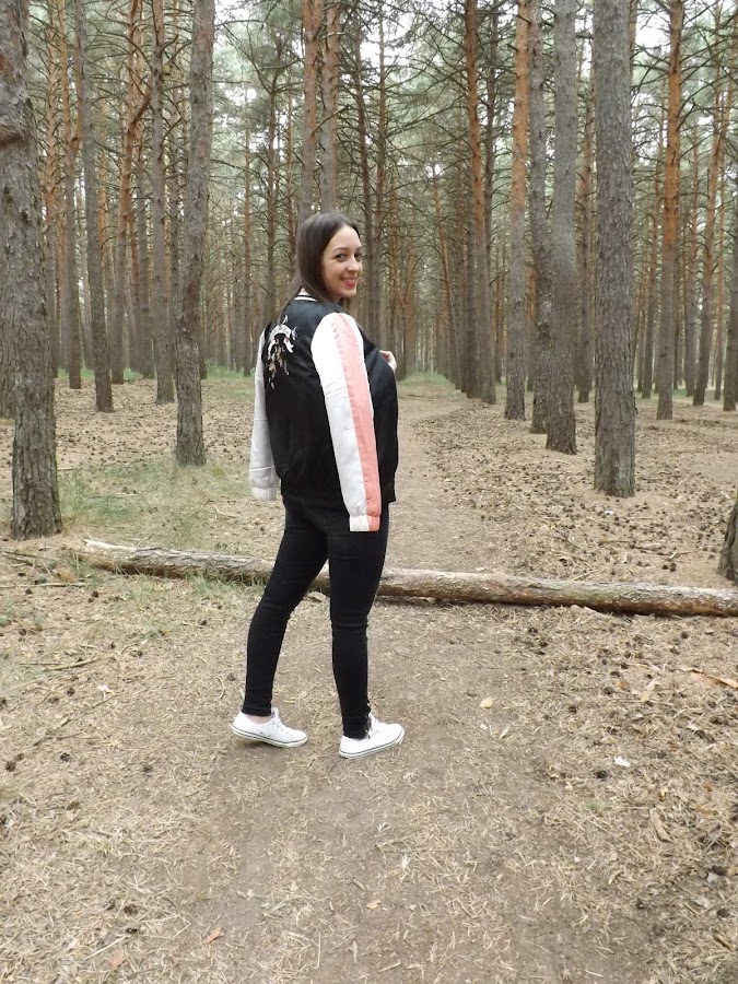 Por fin me he hecho con una bomber y ¡qué bomber! ¡No me puede gustar más! Lo tiene todo, los colores perfectos para combinarla y el rollo que tienen de por sí las bombers pero con un toque dulce debido a los bordados que lleva.