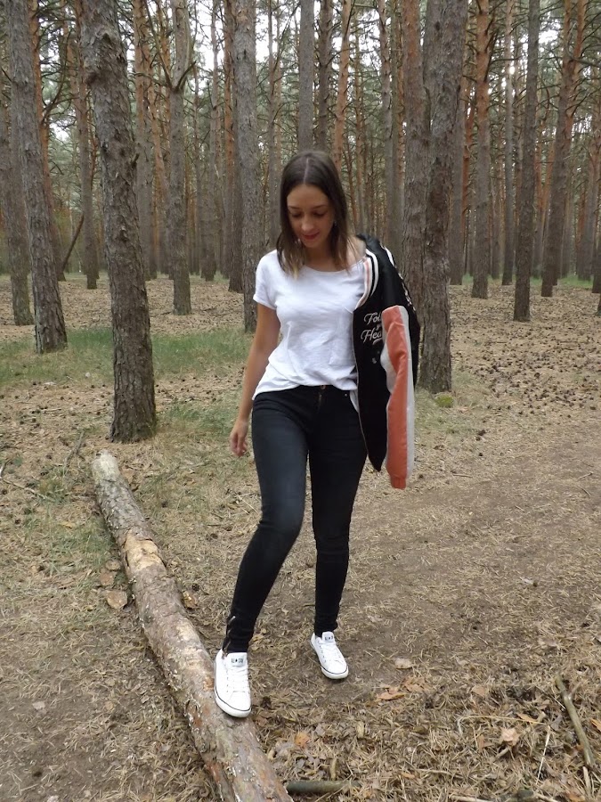 Lo demás lo elegí en los mismos colores: jeans súper skinny de nueva temporada de Primark (que me encanta cómo quedan) y para contrastar, una camiseta básica oversize en blanco.