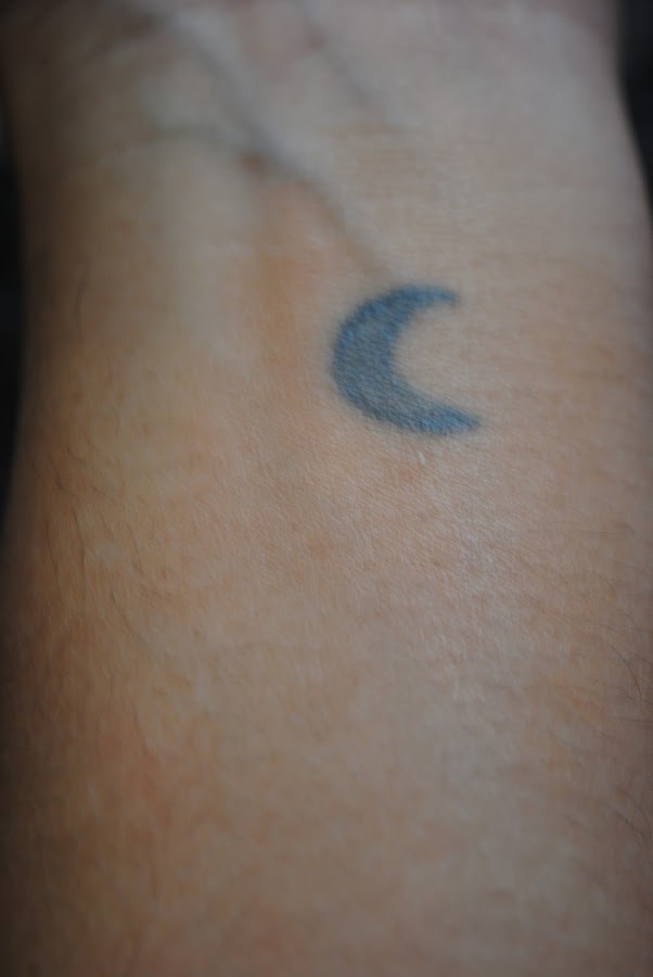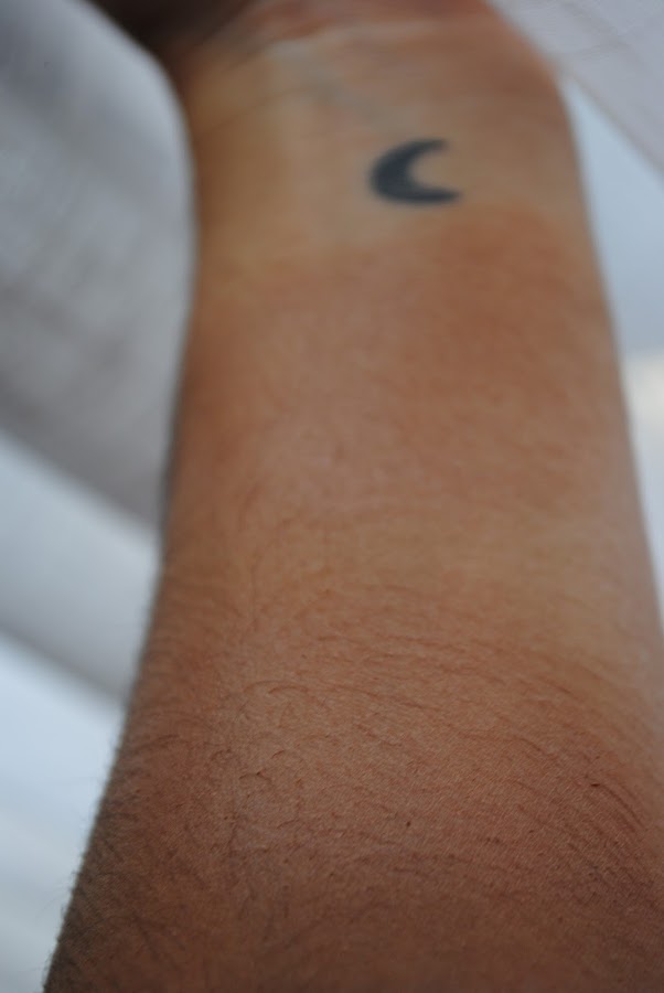 Os dejo fotos de cómo aplica la base en mi brazo (arriba la silisponge y abajo una brocha de mofeta) y cómo cubre mi tatuaje.