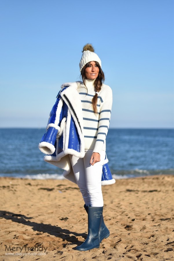 El jersey en concreto, es de la nueva colección de punto KNITWEAR de CYRANA (véase, aquí); Como veis, está diseñado con una base en color blanco que juega con el contraste de las rayas en azul para dibujar una favorecedora combinación. Es un básico, pero no tan básico, que no me canso de repetir... Jijiji.