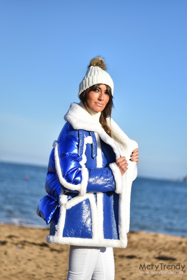Fijaos cómo he compensado el volumen de la parte superior con un pantalón vaquero liso, algo pegado a la pierna y no excesivamente amplio. Respecto del total look blanco por debajo, ni qué decir tiene que ilumina sobremanera mis elecciones del día a día en tanto que rebaja esa vocación llamativa del excéntrico metalizado anorak en cuestión. De ahí que, de ahora en adelante, siempre opte por lucir este precioso diseño en azul eléctrico en estilismos monocolor o mezclándolo con colores neutros.