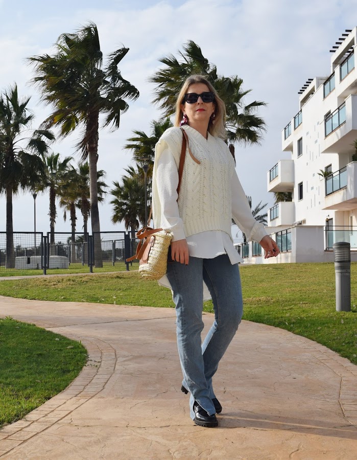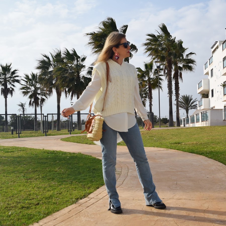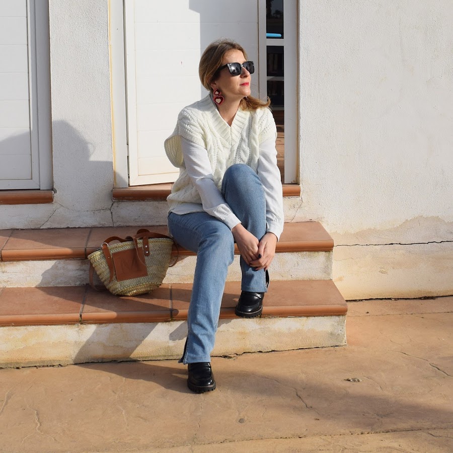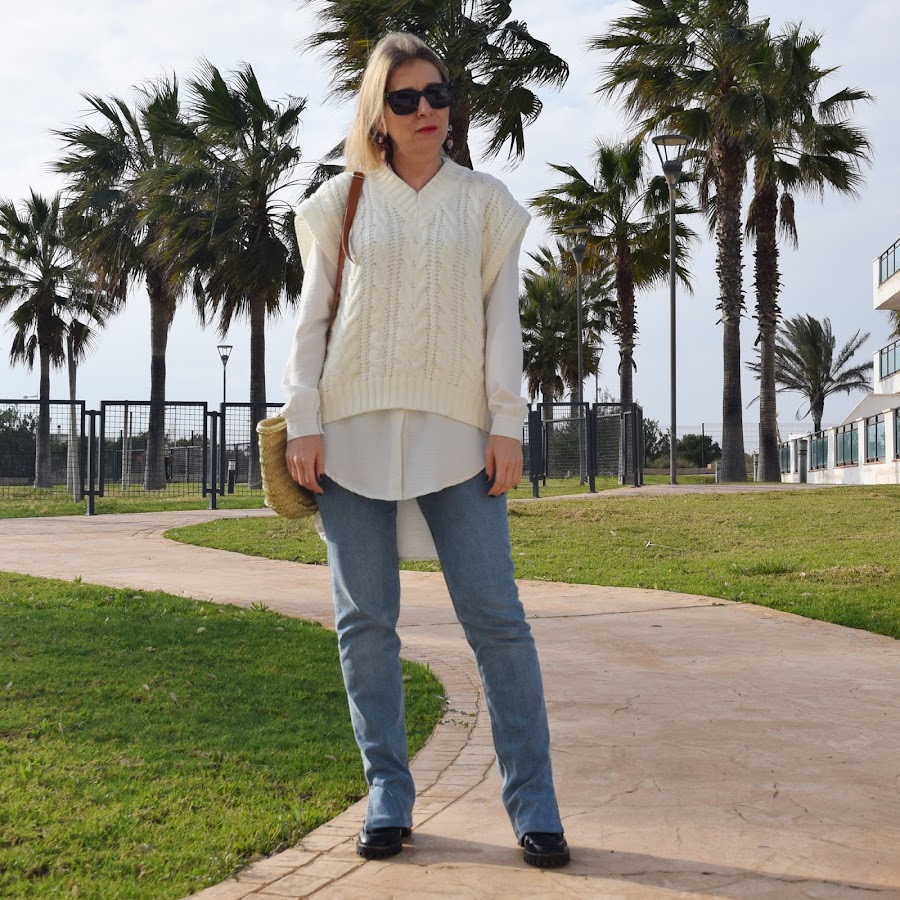 Como digo, prendas básicas de fondo de armario, que todas tenemos, y que podemos combinar de mil formas (imagina cuántas combinaciones puedes hacer con las prendas por separado, como te muestro aquí con el chaleco, con la camisa en este post, y así con vaqueros)
