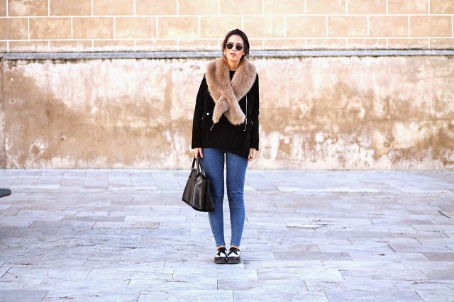 Badajoz, December 2014 Abrigo/ coat: Zara Jersey, jeans: h&m Bolso, pañuelo, cinturón/ bag, belt: Dorado Vintage Collar, anillos/ necklace, rings: María Pascual Botines/ boots: Mango XXX