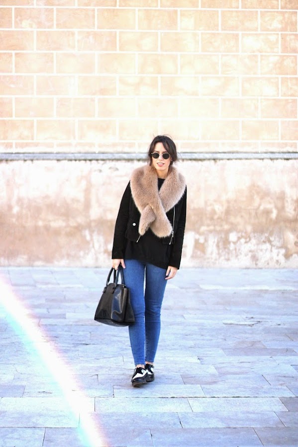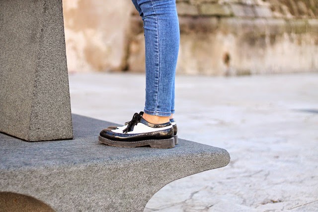 Badajoz, Enero 2015 Blazer: Dorado Vintage Shirt, jeans/ Camiseta, jeans: Zara Sunnies/ Gafas: Dorado Vintage ( here/ aquí) Clutch: Dorado Vintage Heels/ Calzado: Mango Viernes que sabes a que hora sales de casa pero no a la que regresas. Intento de aguantar como una campeona unos stilettos (en los tiempos universitarios aguantaba, ahora me pregunto porqué no), pero llevas en las bolsita tus botin ...