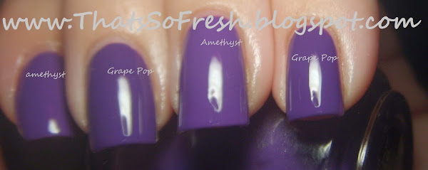 Como les contaba, lo busque y encontré que es dupe de un China Glaze, más precisamente de Grape Pop, aunque la verdad es que es un poquitin mas claro, pero la diferencia es casi imperceptible, les dejo la comparación que encontré en el blog "thats so fresh"