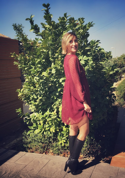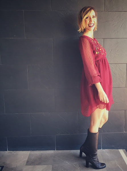 Un vestido suelto, con mangas de plumetti, flores bordadas y en el que parece que va a ser mi color favorito del otoño, el burdeos. ¿Cómo no voy a estar tan contenta de llevarlo? Además, a un precio de escándalo.