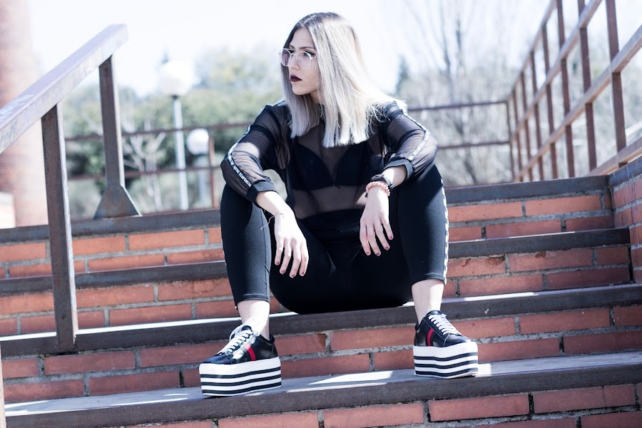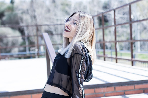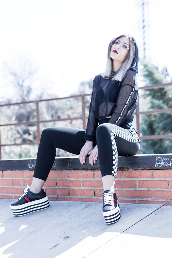 Y parece que por fin han llegado unos días de buen tiempo y yo encantada porque he podido estrenar mi nueva sudadera de SHEIN!! Es una pasada!! Me encanta porque es transparente y las transparencias son mi perdición y además me encanta la tira con estampado de letras en las mangas. La he combinado con unas mallas negras con tira lateral de cuadros en los laterales y mis sneakers de plataforma.