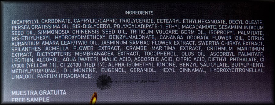 Como se puede ver en la foto, viene con un gotero para poder usarlo más fácil, para mi es muy práctico. Con unas gotas es suficiente. La forma de uso es muy sencilla, se usa por la noche con la piel limpia, hay que repartir unas gotas por el rostro, cuello y escote y esparcirlo bien para que se absorba. Hay que evitar el contorno de ojos. Enseguida se nota el perfume a jazmín, es muy relajante. A mi me gusta echármelo justo antes de irme a dormir y es una sensación muy agradable. Con la mini talla no he tenido para comprobar los resultados en cuanto a nutrición y reparación, pero sí me gusta como me deja la piel de suave.
