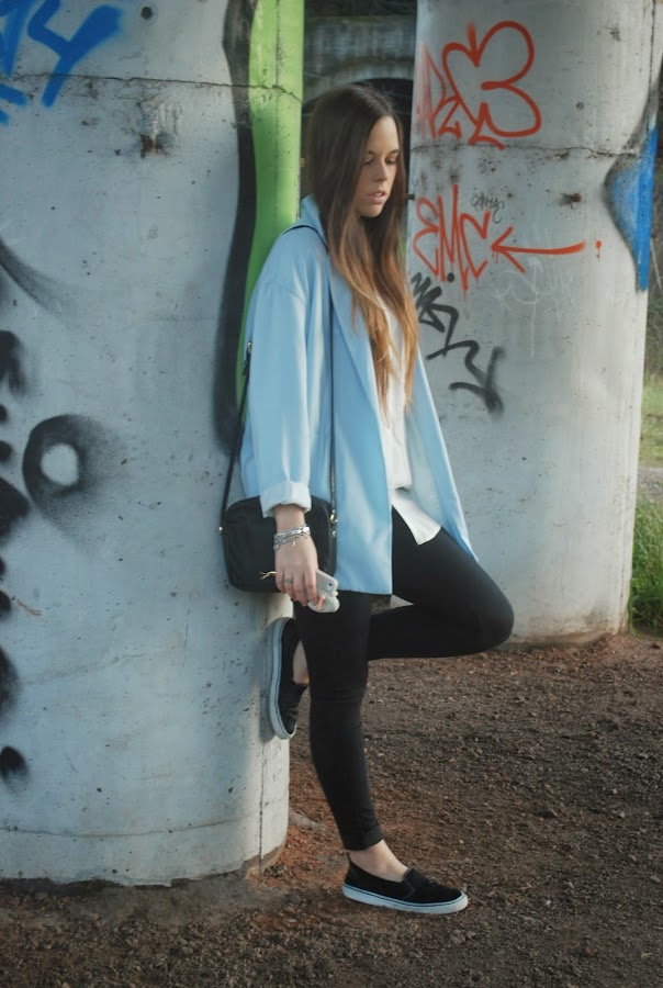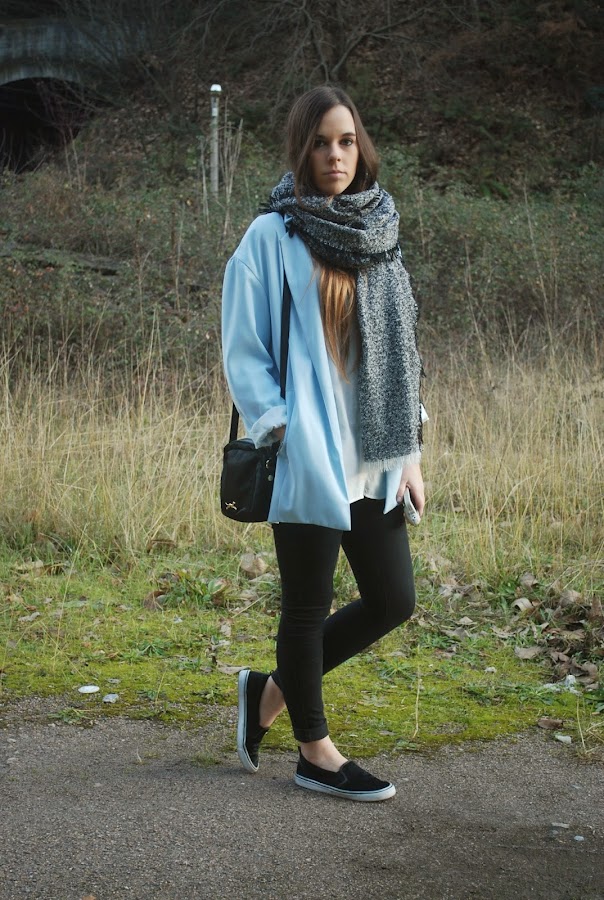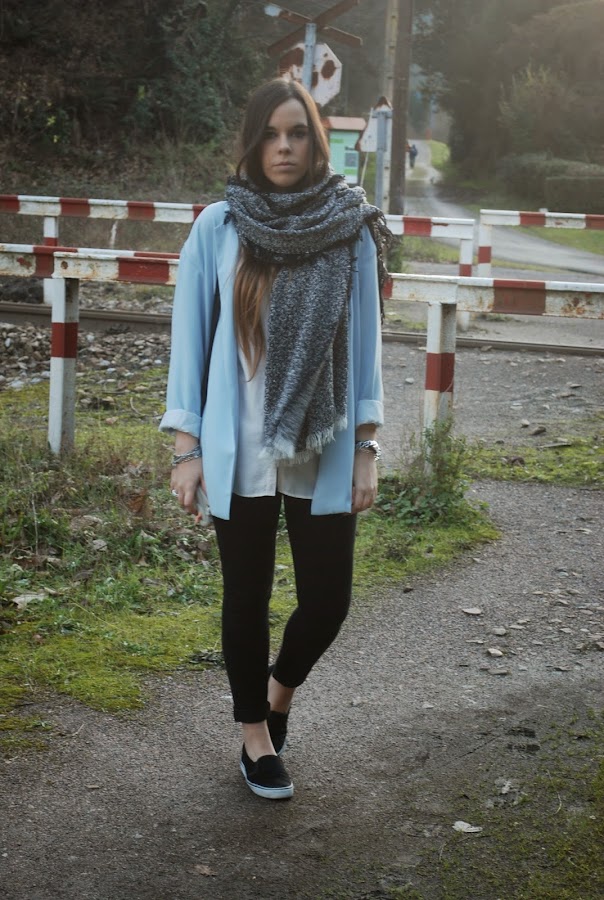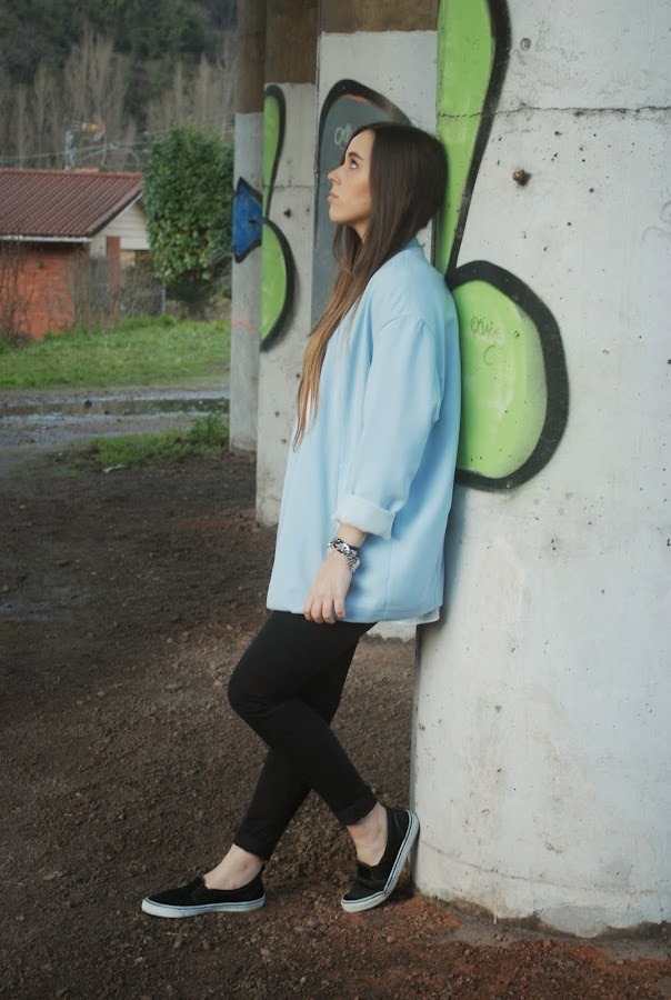 Últimamente no me separo de los básicos, pero esta vez, para darle un poco de color y que el outfit no fuera muy monótono, los combiné con mi blazer azul bebe. Que me gusta mucho pero lo uso muy poco.
