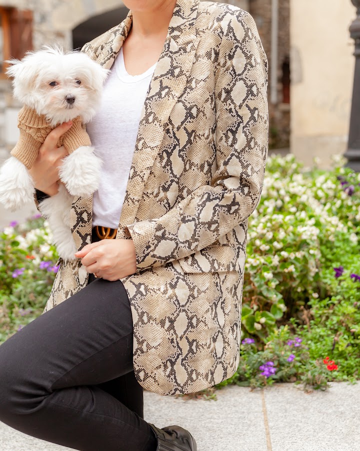 Ya sabéis que el estampado de leopardo desde siempre me ha gustado, en cambio el de serpiente tan apenas me llama la atención. En cambio, esta temporada este print me han enamorado tanto en la blazer que os muestro hoy como en unos jeans de Zara que pronto os enseñaré. Como siempre el animal print me gusta llevarlo en su justa medida, un ejemplo es como os lo enseño en las fotos donde lo combino con prendas básicas como una camiseta blanca y jeans negros.