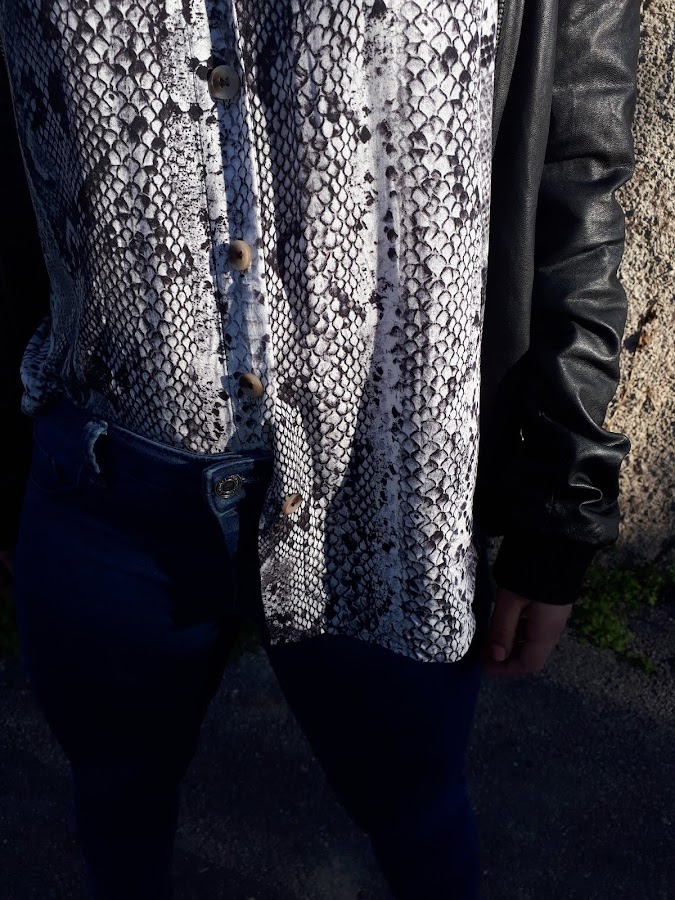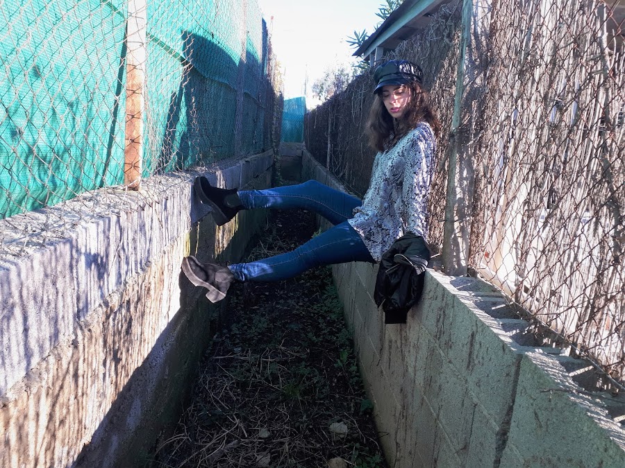 Para estrenar el año, os enseño el primer look, que sinceramente me encanta, es ideal para dar tanto un paseo, como para salir por la noche, con tan sólo cambiando los botines por unos tacones. El protagonista principal es el estampado de serpiente de la blusa, tan en tendencia. La verdad es que no soy mucho de estampados, aunque éste en particular me gustó muchísimo y seguro que me lo pondré bastante. Si os queréis hacer con ella, ahora con las rebajas os saldrá genial de precio. ¿Os gustan los estampados? En cuanto al resto del look quería que fuera bastante sencillo para darle el protagonismo a la blusa. El toque informal de la gorra en este look me parece que queda genial. ¿Qué os parece? ¿Os gusta? ¿Os lo pondriáis?