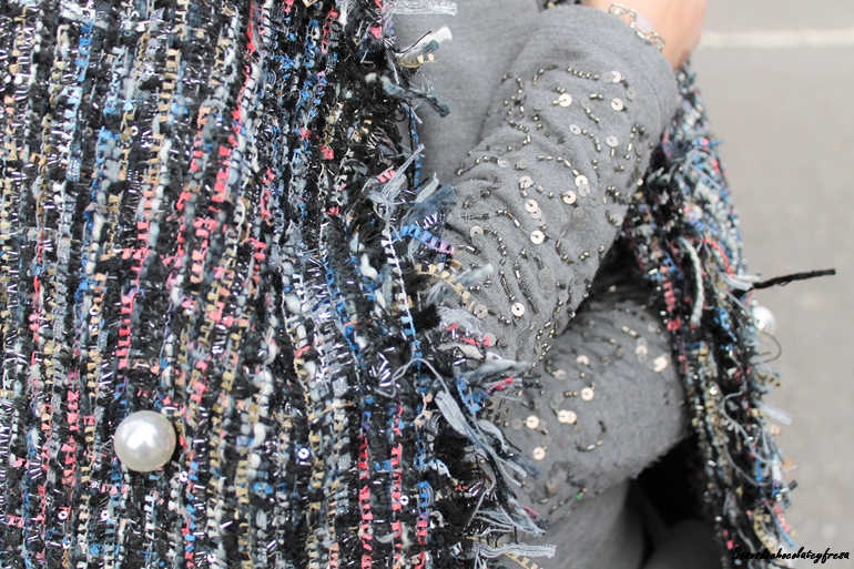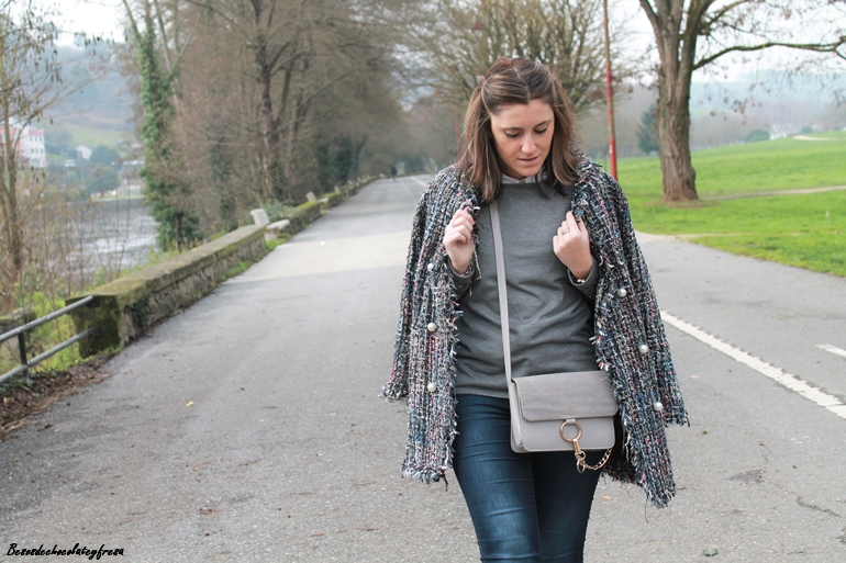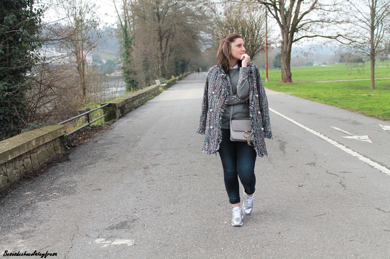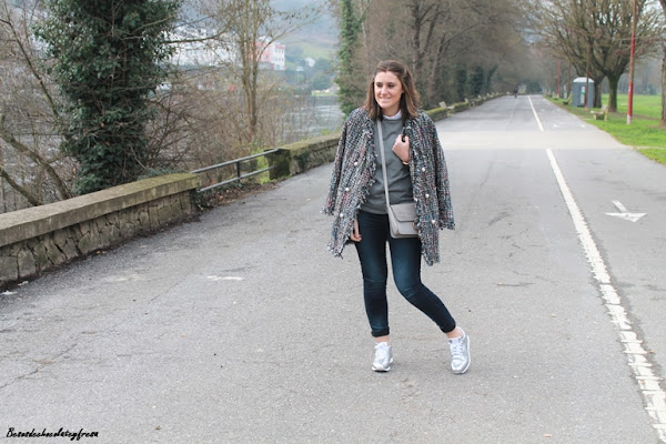 En esta ocasión yo me decanté por tonos neutros como el gris pero con notas de brillos en el abrigo y lentejuelas en el sweater. Jeans oscuros y bolso bandolera completan el outfit de hoy.