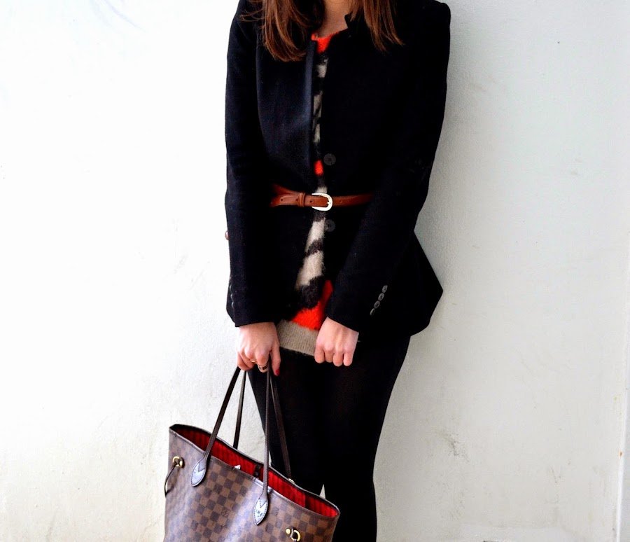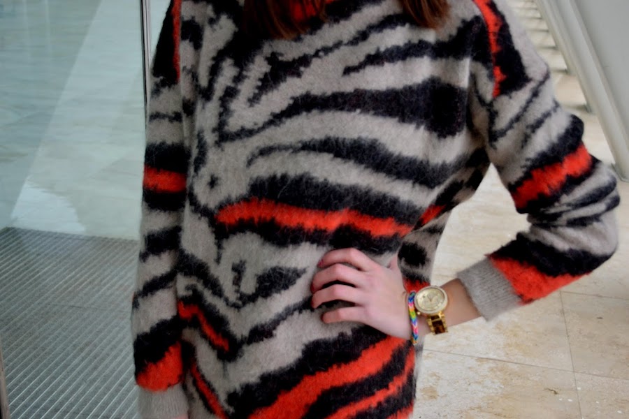 Combiné mis pantalones de cuero con una blazer, para conseguir ese aire elegante que buscaba, el toque de color se lo dio el jersey, por aquí el frío parece que no nos abandona así que los jerseys de pelo continúan siendo mi prenda estrella. Para acabar maxi bolso, tacones.. ¡¡y una preciosa pulsera que me hicieron mis niñas del cole!!, estoy segura de que muchas de vosotras ya las conoceréis jaja.