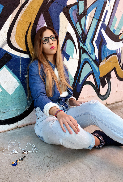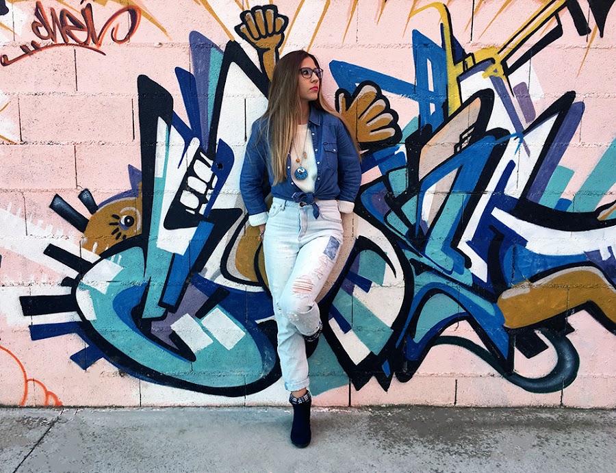 En cuanto al outfit me he decantado por mis mom jeans rotos azul clarito con parches, un jersey de punto grueso en color crudo combinado con mi camisa vaquera atada a la cintura y mis botines con cuña escondida!!