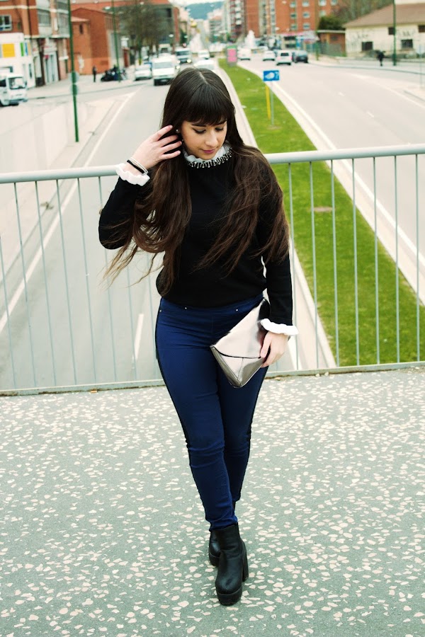 La prenda estrella sin duda es el jersey negro con mangas y cuello blanco que ademas tiene una bonita pedrería plata. Este Jersey es de la tienda METISU, la cual ya os he hablado en este otro post: Safari. Como os dije el precio de esta tienda es más elevado que el de otras páginas chinas similares a la que estamos acostumbrados. Pero la atención, envío, empaquetamiento y calidad, no tiene ningún fallo, todo rápido, bueno y bonito.