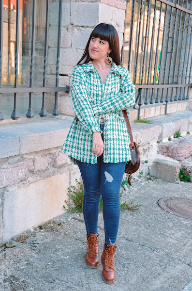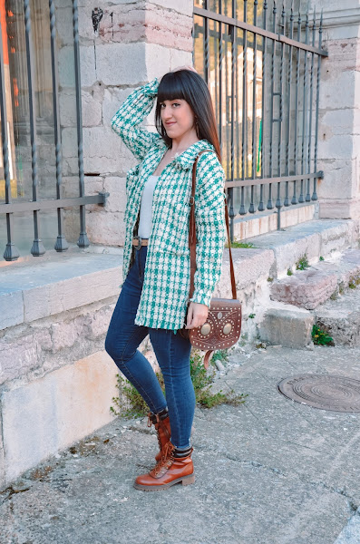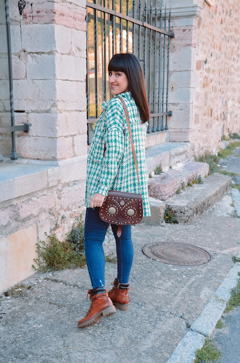 La chaqueta tiene una calidad espectacular y la combinación de colores me encanta. Además el resultado con los complementos en color camel me ha enamorado.
