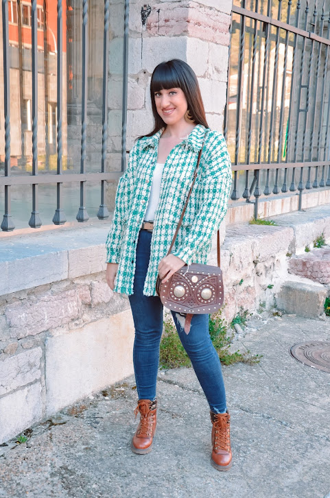 Hoy os quiero enseñar un look más relajado, utilizando la chaqueta de Shein como sobrecamisa. Con unos jeans, botas cómodas y bolso de cuero ya tenemos un look bonito, colorido y muy cómodo para darle color a la primavera.