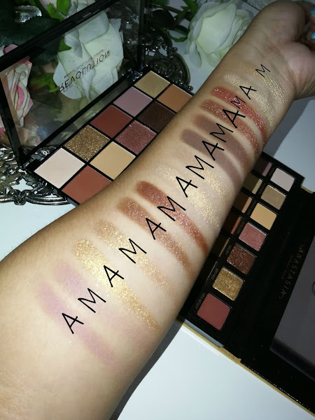 En los swatches os he identificado con la A las sombras de Anastasia y con M las de Makeup Revolution .
