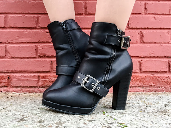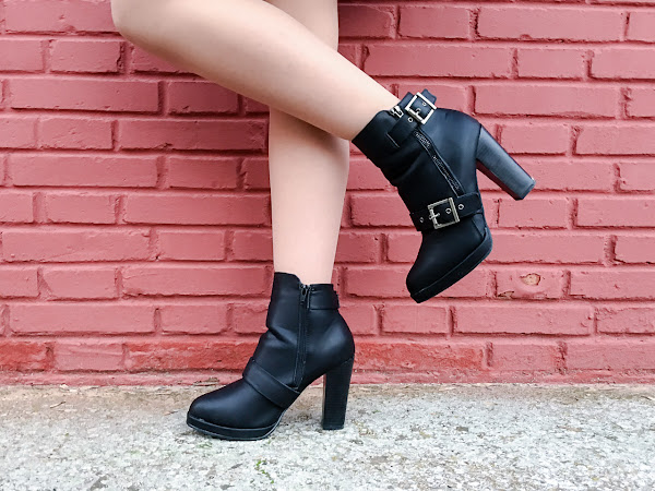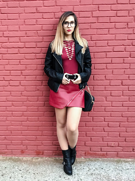 Para rematar el look y salir un poco de tanto rojo, la he combinado con mi biker negra, mi cinturón rockero y mis botines negros de hebillas de JUST FAB, que tanto me acompañan!!