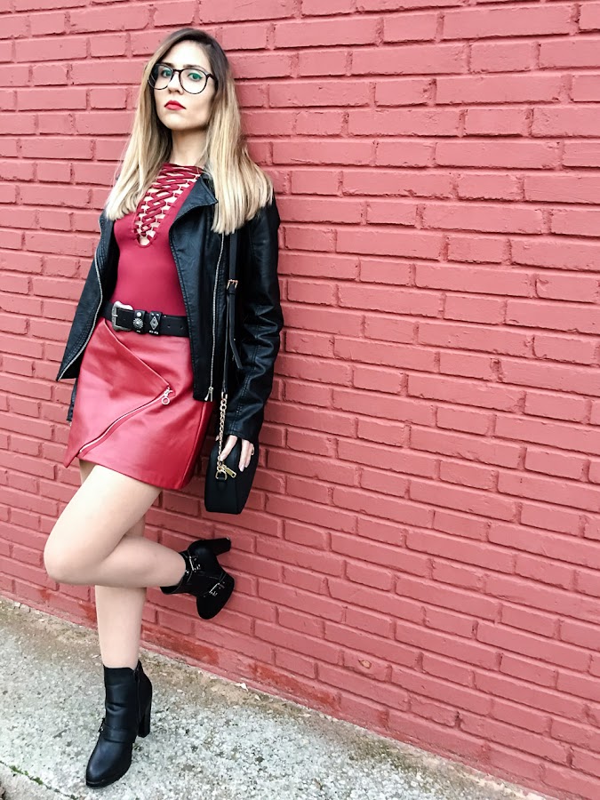 As I said before, Ive bet everything to red and Ive combined it with my BOOHOO lace neck body that I bought last year.