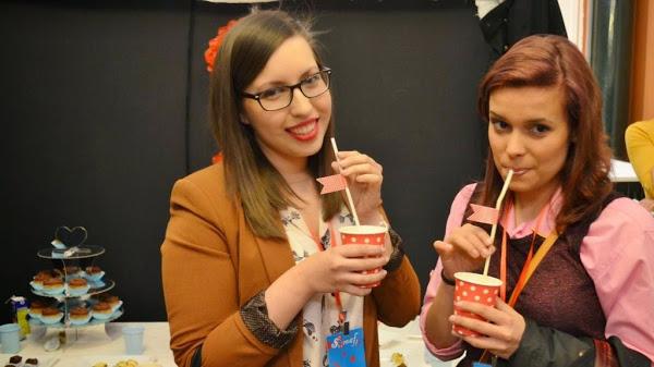 Zumo de naranja, cake pops, magdalenas con frosting de chocolate, pastas con chocolate blanco, bizcocho de frutos rojos y chocolate, ¡sin olvidar la mesa de chucherias! Todo buenísimo y colocado con detalles cuquis para hacerlo aún más atrayente. Dimos buena cuenta de tantas cosas ricas en el descanso entre diseñadores, y nuestra cara ¡lo dice todo!