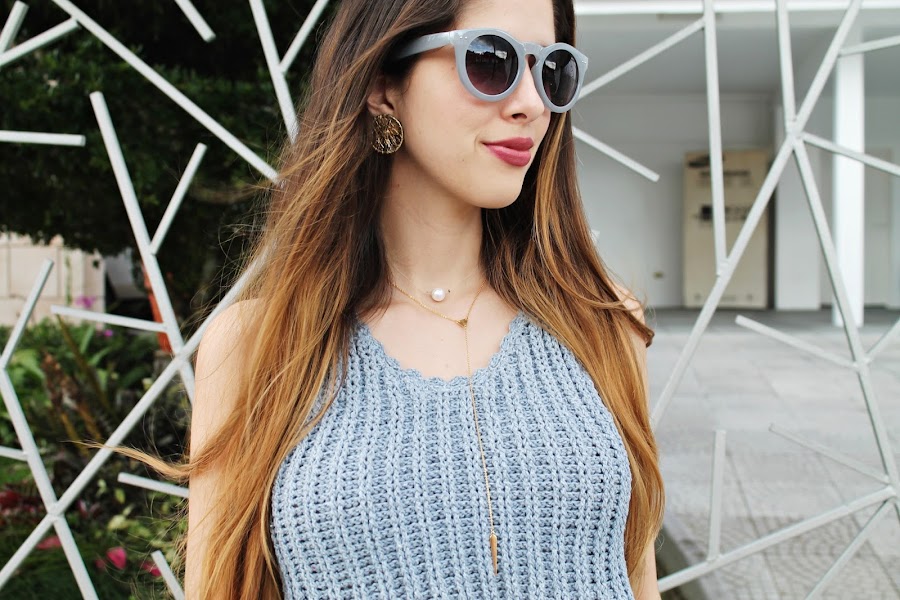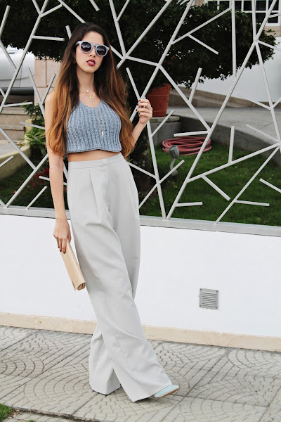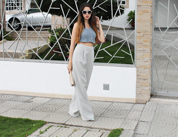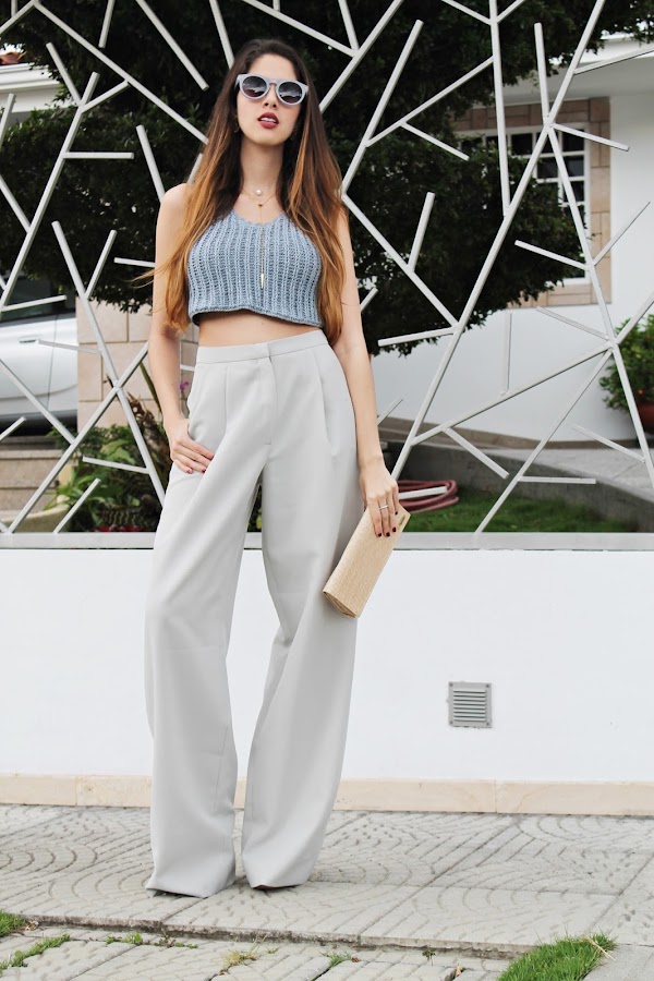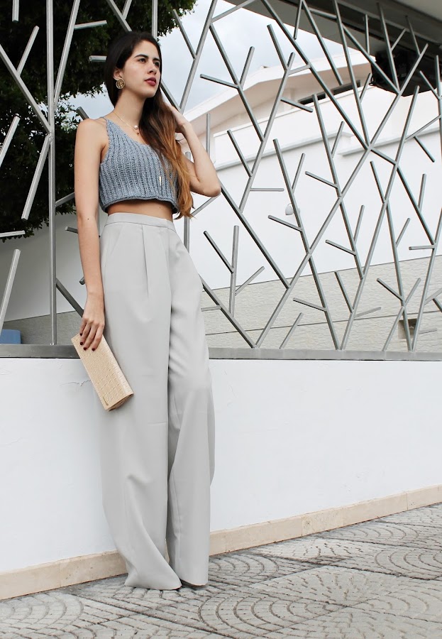 Este look es algo digamos "diferente visualmente" ya que estoy combinando diferentes telas y prendas que no estaríamos acostumbrados a ver juntas ¿un crop top de crochet con un pantalón palazzo? ¿A quién se le ocurre? Jajajajaja.