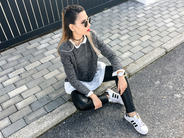 Lo he combinado con unos pantalones de cuero, que ya os enseñé en post anteriores y que quedan como un guante, mis adidas superstar y mi reloj blanco.