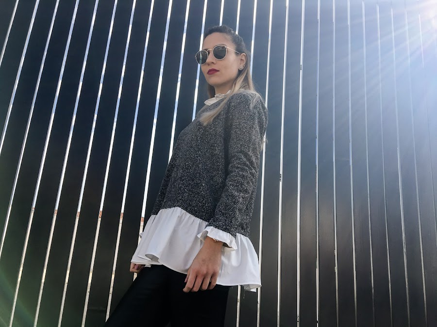This time the protagonist of today is my sweater of a dark gray mottled effect shirt with a ruffle on the collar and sleeves! Its absolutely beautiful and thats great !!