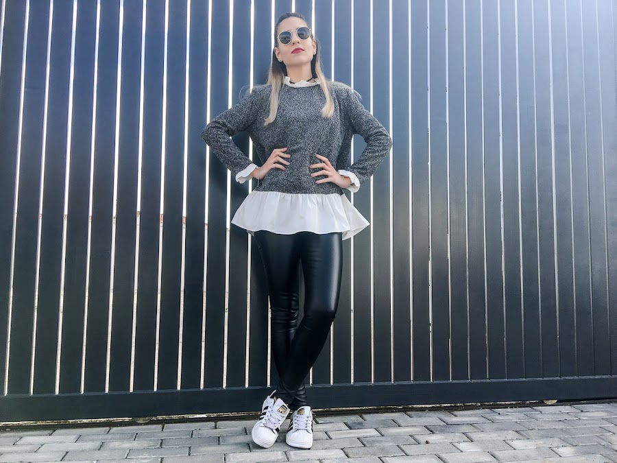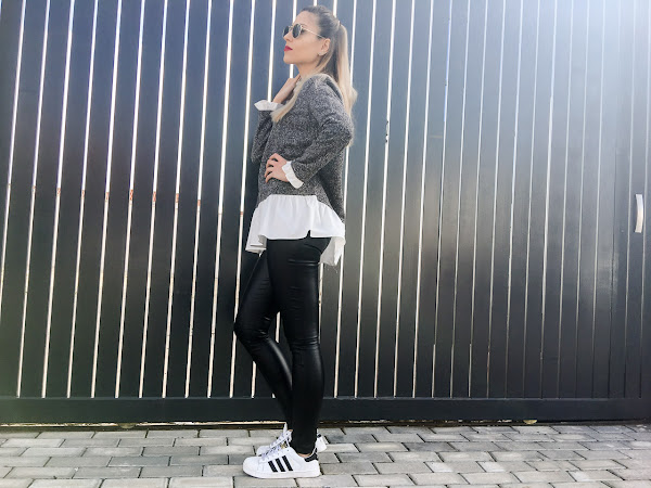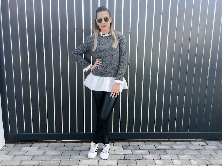 I have combined it with leather pants, which I showed you in previous posts and that remain as a glove, my adidas superstar and my white watch.