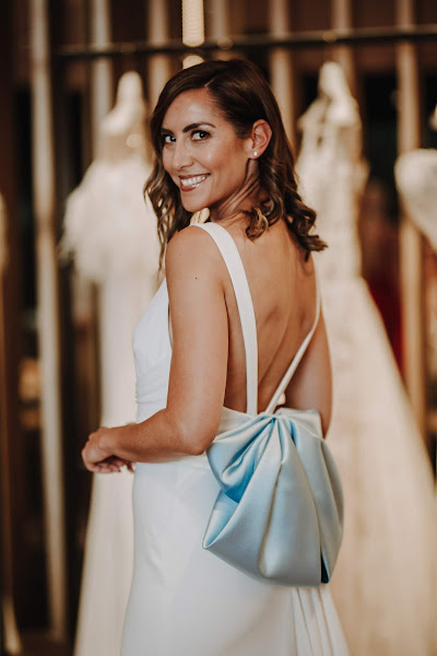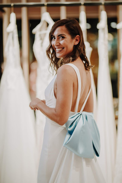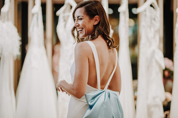 El segundo vestido que me puse, con un diseño más veraniego y el toque especial (y azul) de un gran lazo en la espalda, también me encantó. Además, las chicas de Yolanda López me peinaron en cinco minutos allí mismo y me hicieron unas ondas súper bonitas.