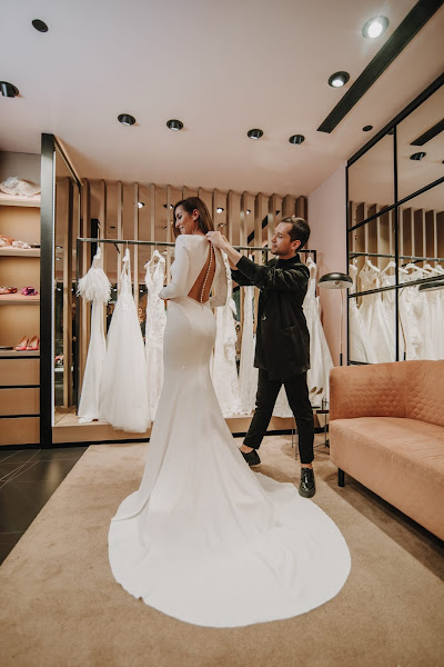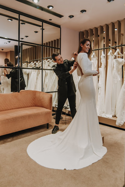 Riccardo Serravalle, diseñador de la firma, nos estuvo enseñando de primera mano sus creaciones para la próxima temporada, contándonos los detalles y su inspiración, y diciéndonos cuál de sus vestidos sería perfecto para cada una de nosotras. Personalmente, creo que conmigo acertó de lleno. El primer vestido que me puse (el de la portada de este post) es tan de mi estilo y le va tan bien a mi tipo de cuerpo que creo que quiero casarme otra vez para ponérmelo. ¡En serio! Además, había diseños para todos los gustos y estilos, cosa que también se agradece cuando una busca su vestido de novia.