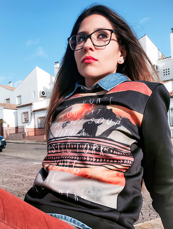 "Why dont you eat alphabet soup with a plastic fork while reading the newspaper", sería complicado no?? Pues a eso os reta mi sudadera, aunque yo ni siquiera lo he intentado, jaja!! Una sudadera súper cómoda, con una tela brillante y con una combinación de colores que me encanta!