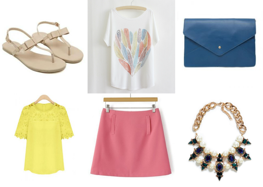 1.Sandals 2.Sleeves T-Shirt 3.Blue Bag 4.Yellow Blouse