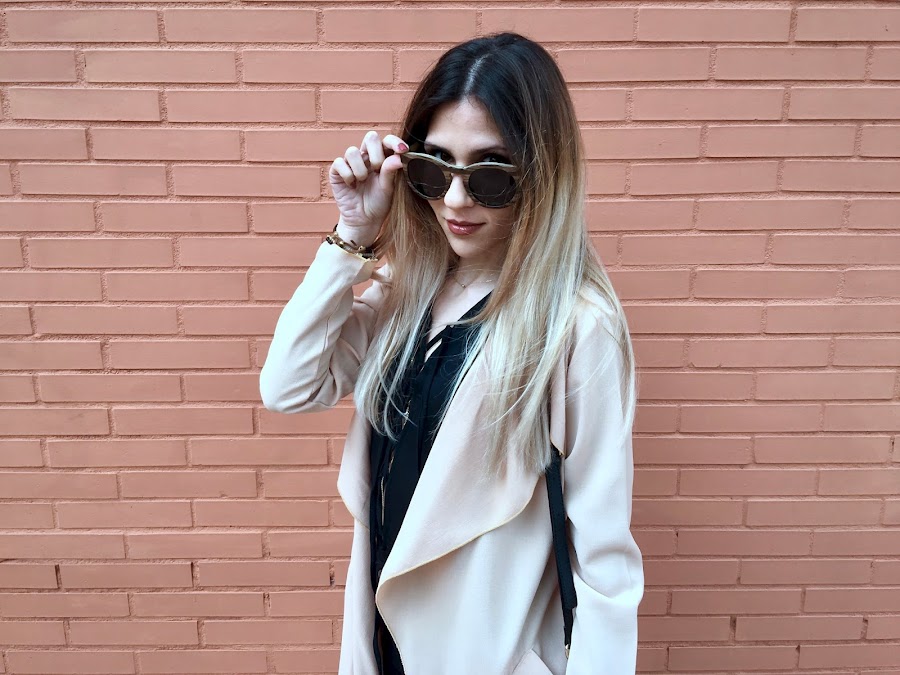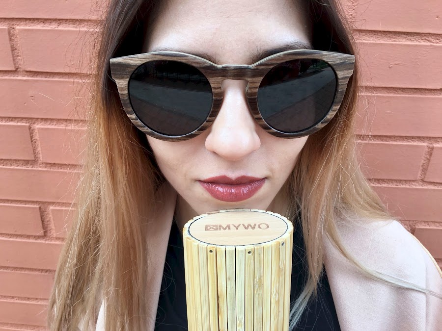 Como complemento estrella, os enseño mis nuevas gafas de madera de MYWO. Una tienda donde podéis encontrar gafas, relojes, fundas para tu móvil e incluso pajaritas, todo realizado con madera. Cada producto pasa por un proceso de fabricación prácticamente artesanal, cuidando el diseño y cada detalle con las propiedades de la madera.