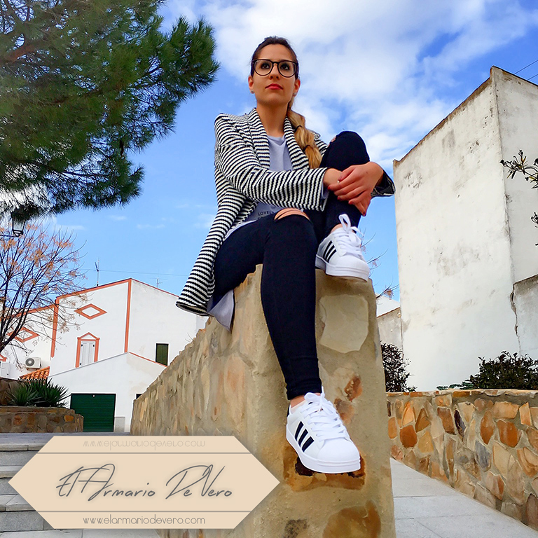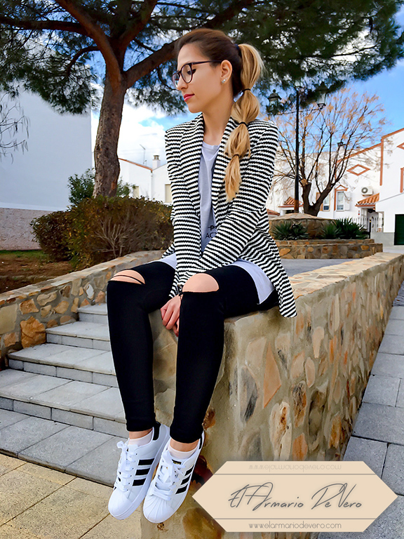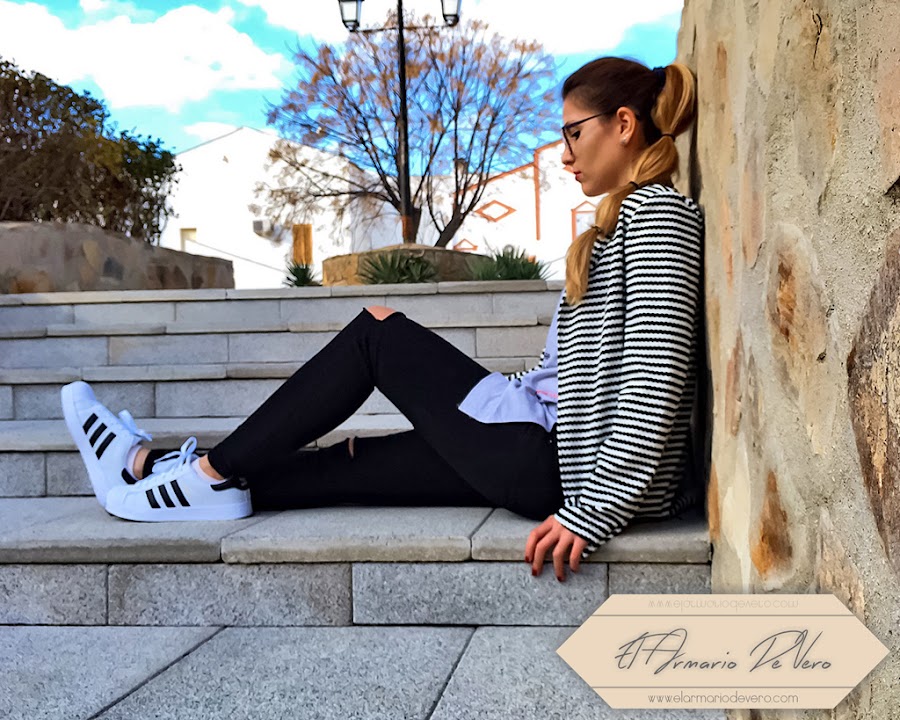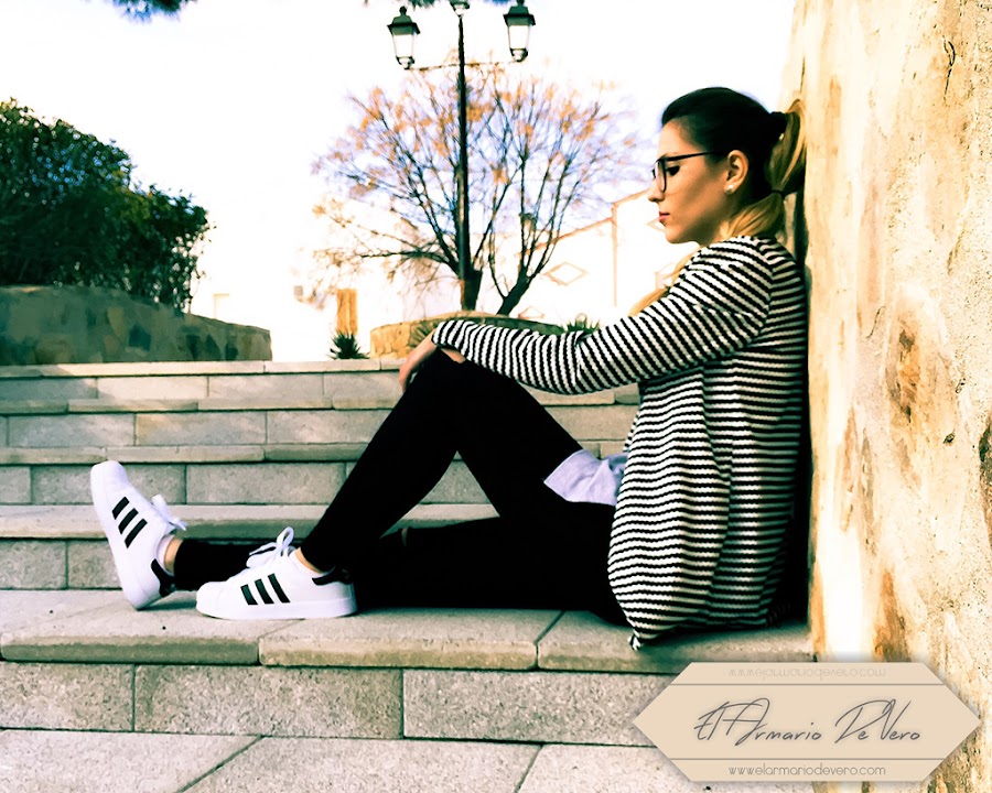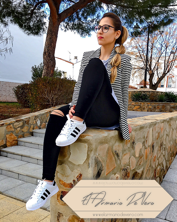 Y para mis pies, he elegido mis Adidas Superstar también en blanco y negro! Súper cómodas!!