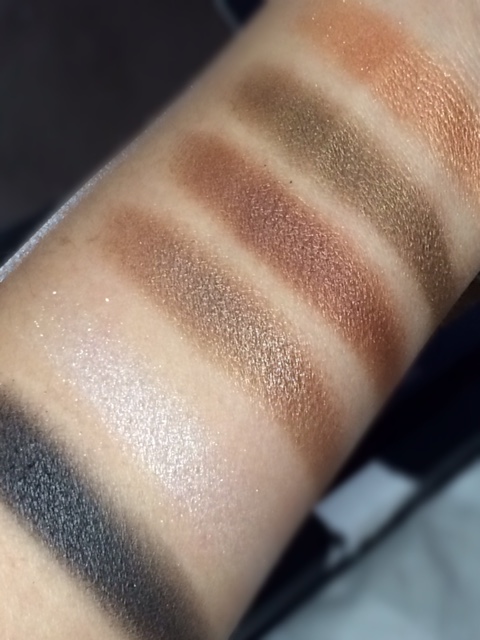 Probé varias en dos looks diferentes y con pincel se toman bastante mejor, por eso el tema swatche es muy subjetivo y nos sirve para ver el tono y hacernos una idea de la pigmentación, no más . Las sombras de esta paleta se trabajan mejor con el pincel desde luego .