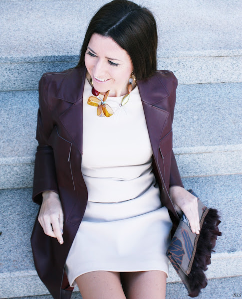 Siguiendo con la tendencia en polipiel de esta temporada, elegí un mini-vestido en crudo, añadiendo unos toques de color con un maravilloso collar de la nueva temporada de Parfois donde las flores hacen preludio a la próxima primavera.
