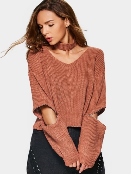 A spice Zipper Sleeve Choker Sweater with best quality and unique fashion design. Simple but attractive!