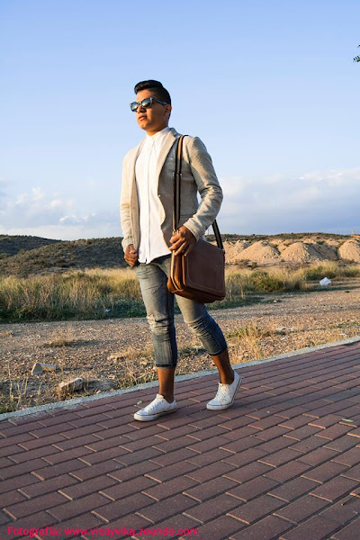 Una americana que nunca falta en mi fondo de armario, una camiseta básica que me inspira siempre para saber jugar con las combinaciones de los colores y unas gafas como complemento indispensable que no faltan nunca en mi bolso mágico, (siempre va conmigo :D)