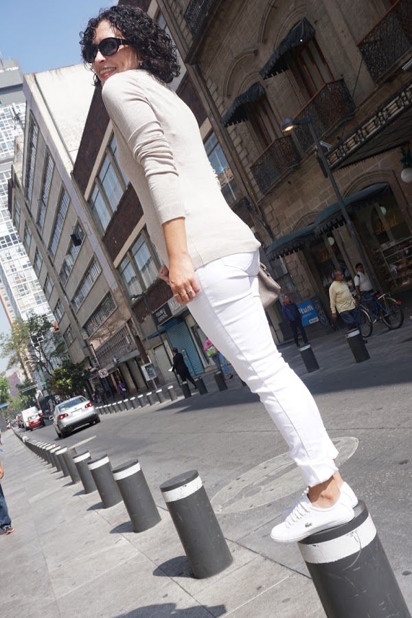Nunca ha sido tan fácil para mi, lucir al mismo tiempo comoda, chic y por sí fuera poco con prendas, colores y texturas de súper tendencia, la simple mezcla del pitillo blanco con un suéter de cashmere en color arena y estos hermosos tenis blancos, realmente los accesorios para mi, en esta ocasión no hicieron falta, pues la combinación de colores hacía todo el look; ¿creen que hizo falta accesorios?.