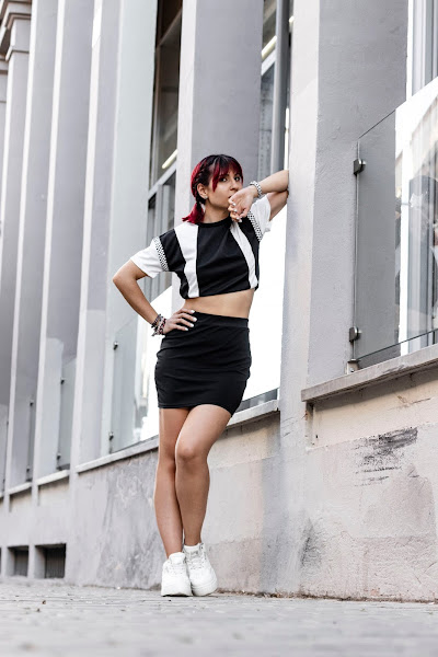 I wanted to show you this joint that you already saw in my GIRLMERRY sport style instagram. A super cool top and skirt! In black and white combined with a checkered pattern on the sides and sleeves. In addition, the skirt is super comfortable and a tad elastic!